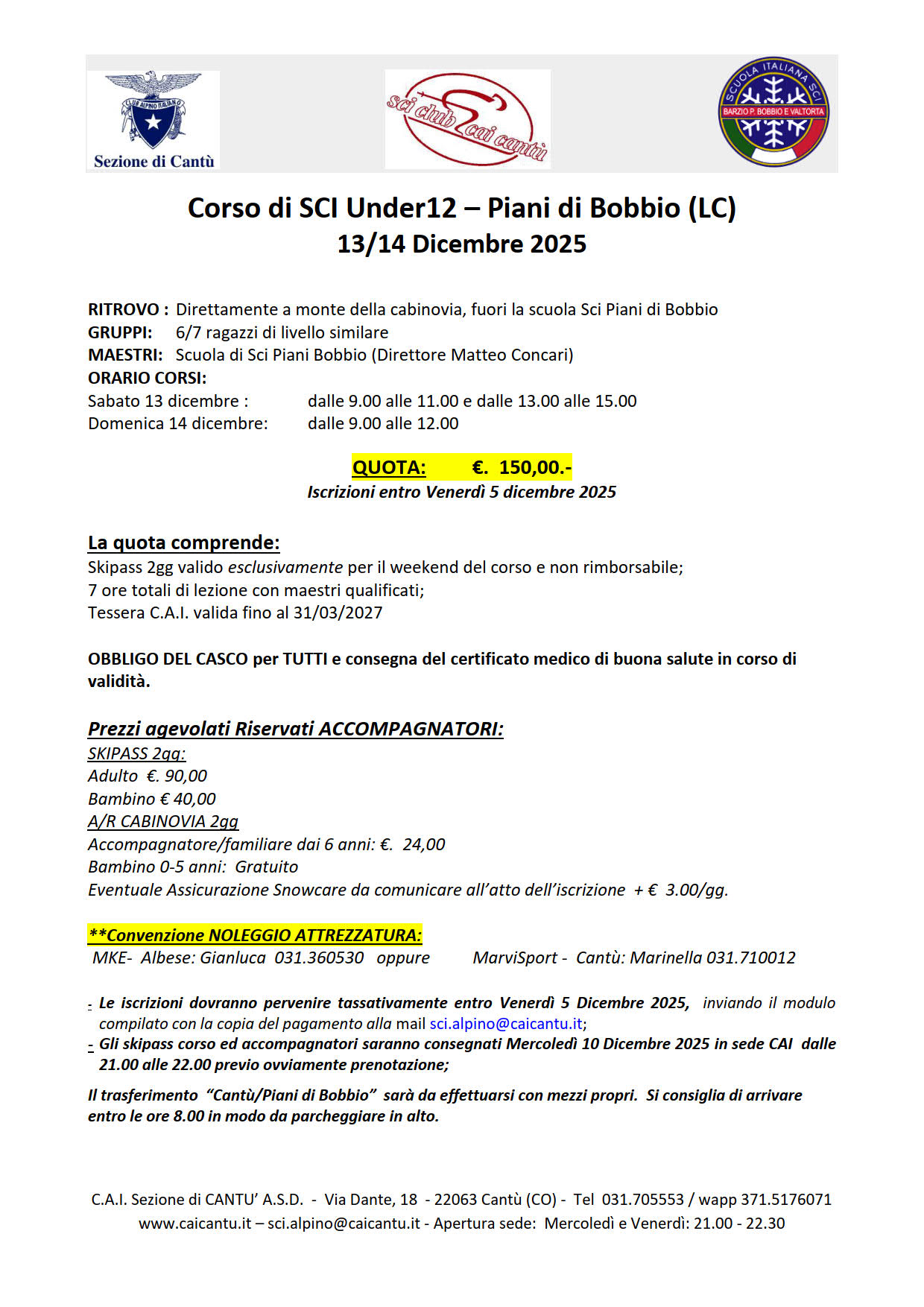 Chi fosse interessato a partecipare o a ricevere informazioni può rivolgersi alla sede del CAI Cantù durante gli orari di apertura, oppure seguire le comunicazioni sui canali ufficiali della sezione.