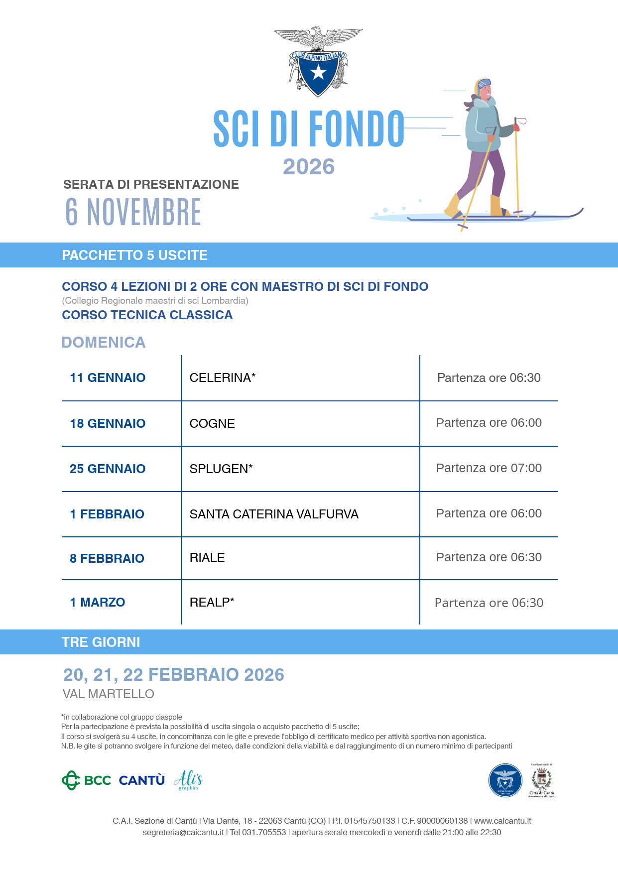 © CAI Cantù   Via Dante 18   22063 Cantù (CO)   |   P.I. 01545750133   ⁄   C.F. 90000060138           Facebook Youtube